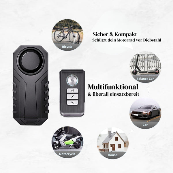 Mit einem lauten Alarm von bis zu 113 dB schreckt dieses System potenzielle Diebe ab. Die Vibrationsfunktion löst sofortigen Alarm aus, wenn jemand versucht, das Motorrad zu bewegen.